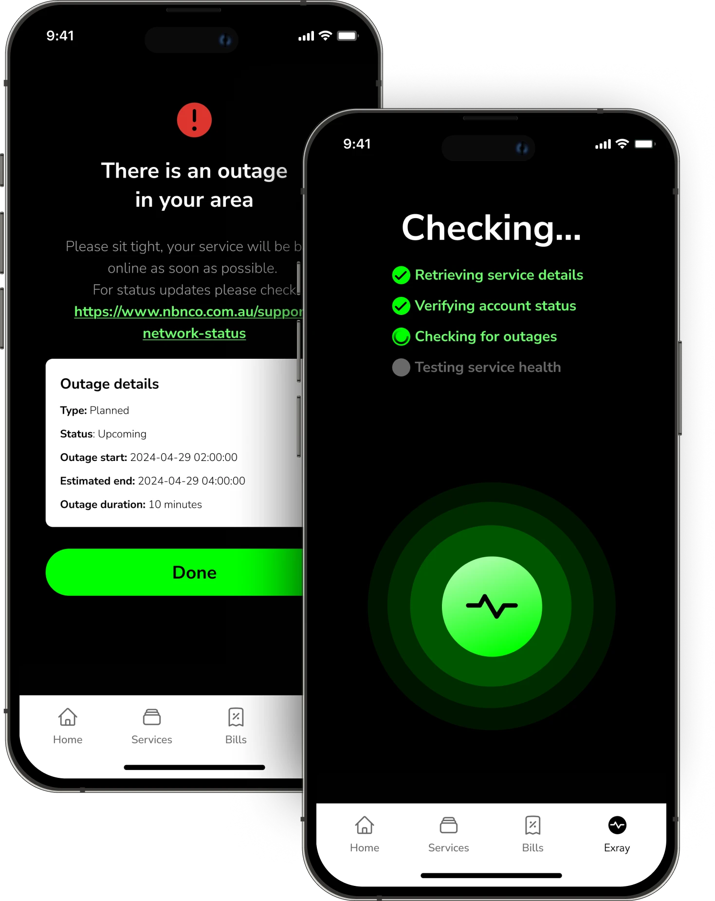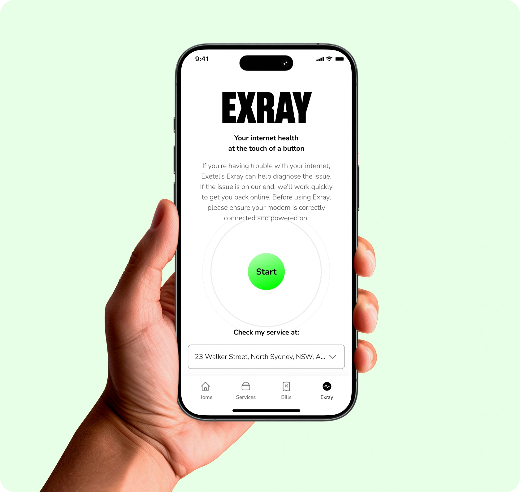 Using Exray is super cruisy - download the Exetel app (if you haven’t already), head to the Exray feature, and tap the button to run a scan. Give it a few minutes to do its “Exraying” and you’ll soon know whether the issue is with your home set up, your modem, the nbn, or our connection.